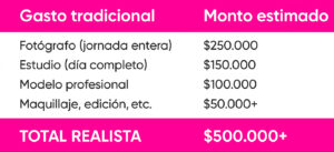 Una sesión de fotos tradicional te cuesta mínimo $500.000.